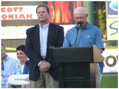 Rochester Baseball Historical Society board member Scott Pitoniak joined an elite group of Rochester Baseball icons on Saturday August 17th as he was inducted into the Rochester Red Wings Hall of Fame. Pitoniak, honored for his many years of contributions as a writer for the Democrat & Chronicle newspaper and as an author of numerous books, joined Mike Mussina, Jim Hutto and John Ganzel as the most recent inductees into Rochester Baseball’s inner circle.