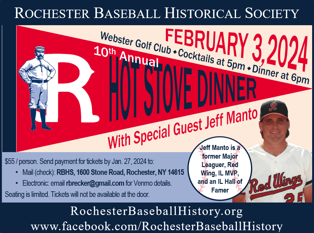 RBHS is pleased to announce that the 10th annual Hot Stove Dinner, which will take place February 3, 2024, will feature special guest Jeff Manto!